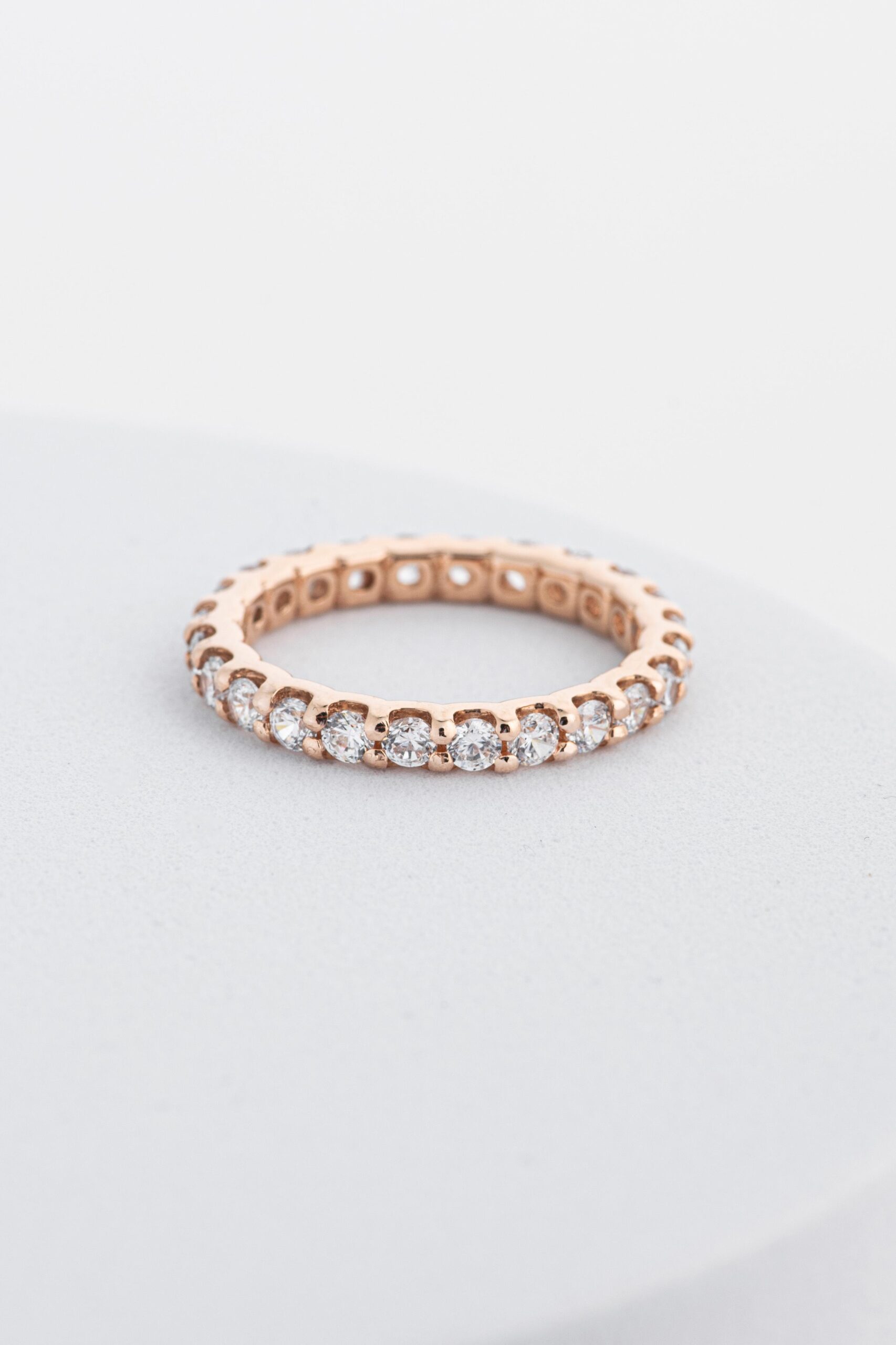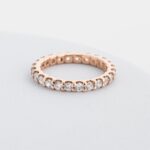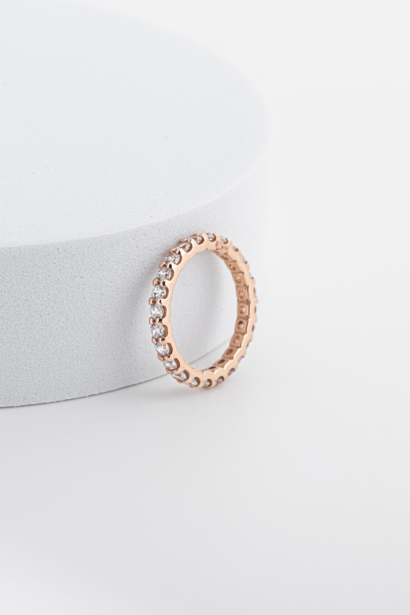 Класичний вибір для тих, хто цінує стиль, елегантність і неперервну красу. Каблучка має тонку, витончену форму, яка акуратно огортає палець, створюючи відчуття легкості та комфорту. Головною прикрасою каблучки є ряд дрібних кубічних цирконіїв, рівномірно розташованих по всій її поверхні. Ці камінці переливаються і грають на світлі, створюючи ефект безперервної доріжки сяйва.