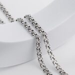 Козацький Бісмарк — це масивний і виразний срібний ланцюг, що відображає силу та характер. Його плетіння відрізняється особливою міцністю й складною структурою: ланки щільно переплетені між собою, створюючи об’ємний, фактурний візерунок. Завдяки цьому ланцюг виглядає солідно і привертає увагу.