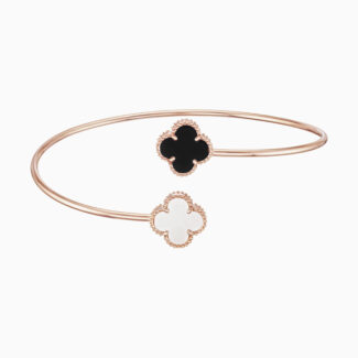 Жорсткий браслет “Конюшина” з перламутром та оніксом