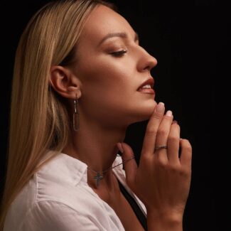Виготовлена зі срібла 925 проби та покрита родієм для додаткового блиску й захисту від потемніння. Ширина 5.5 мм робить її помітною, але комфортною для щоденного носіння.